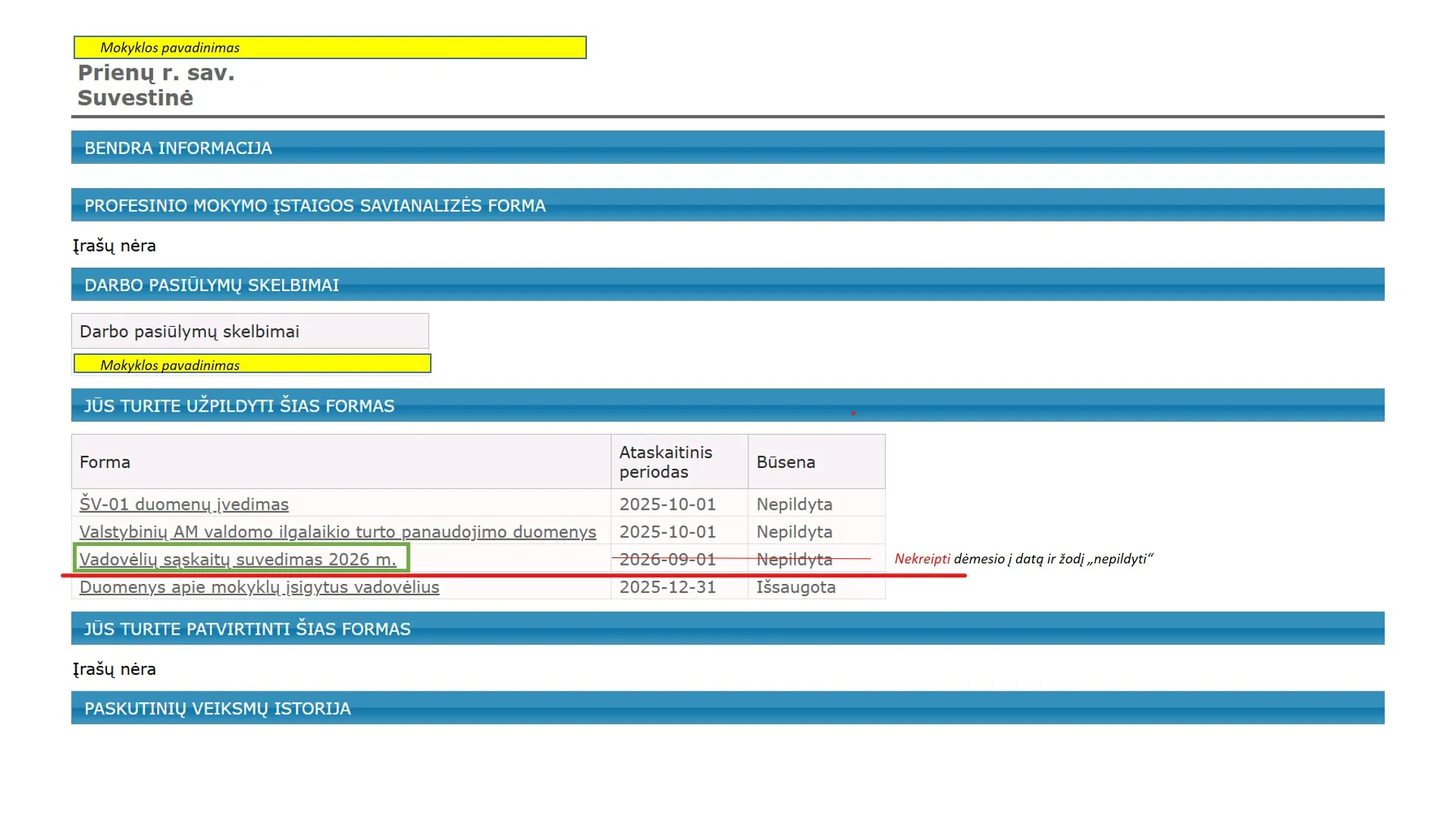 ! Su kitomis mokyklomis, kurios projekte dalyvauja tęstine forma ir nepatyrė reorganizacijos, bus pasirašomas tik 2025 m. Jungtinės veiklos sutarties papildymas, patikslinantis mokyklai skirtą lėšų sumą.
