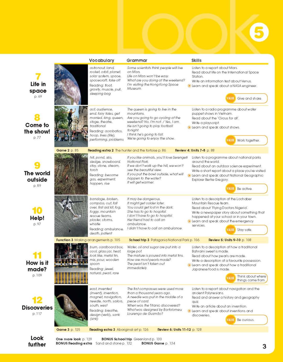Vadovėlis „Look 5“ orientuotas į A1/A2 kalbos mokėjimo lygį ir gali būti naudojamas mokant anglų kalbos penktaisiais mokymosi metais 6 klasėje.