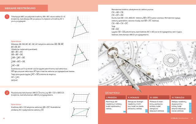 - pasiekimų įsivertinimas pagal keturis pasiekimų lygius.