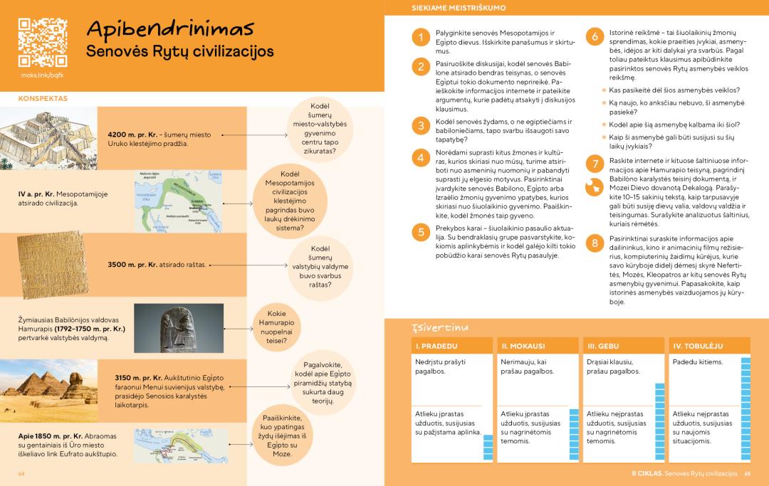- Teorinę ir praktinę medžiagą praeities įvykiams nuo žmonijos istorijos pradžios iki senųjų civilizacijų susiformavimo analizuoti, sieti su šiandiena, o tiriant praeitį - suprasti šių dienų realijas.