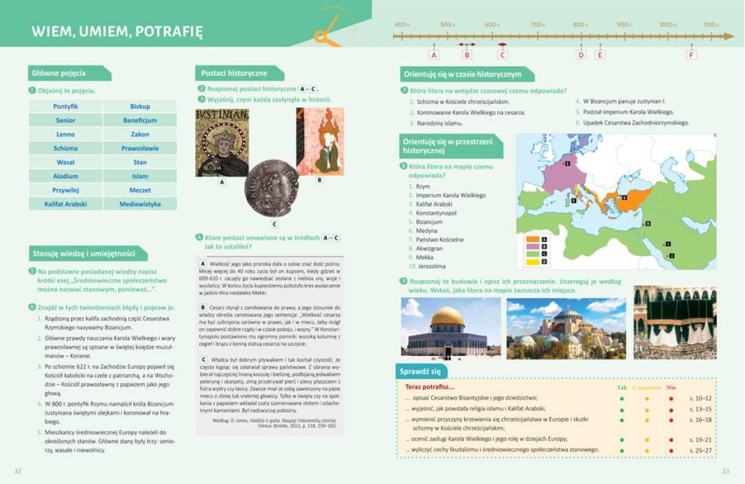 Pagal 2022 m. atnaujintą istorijos bendrąją programą parengto vadovėlio „Laikas 8“ I dalyje supažindinama su svarbiausiomis viduramžių laikų epochos istorijos asmenybėmis, sąvokomis, datomis, įvykiais bei reiškiniais Europoje ir Lietuvoje.
