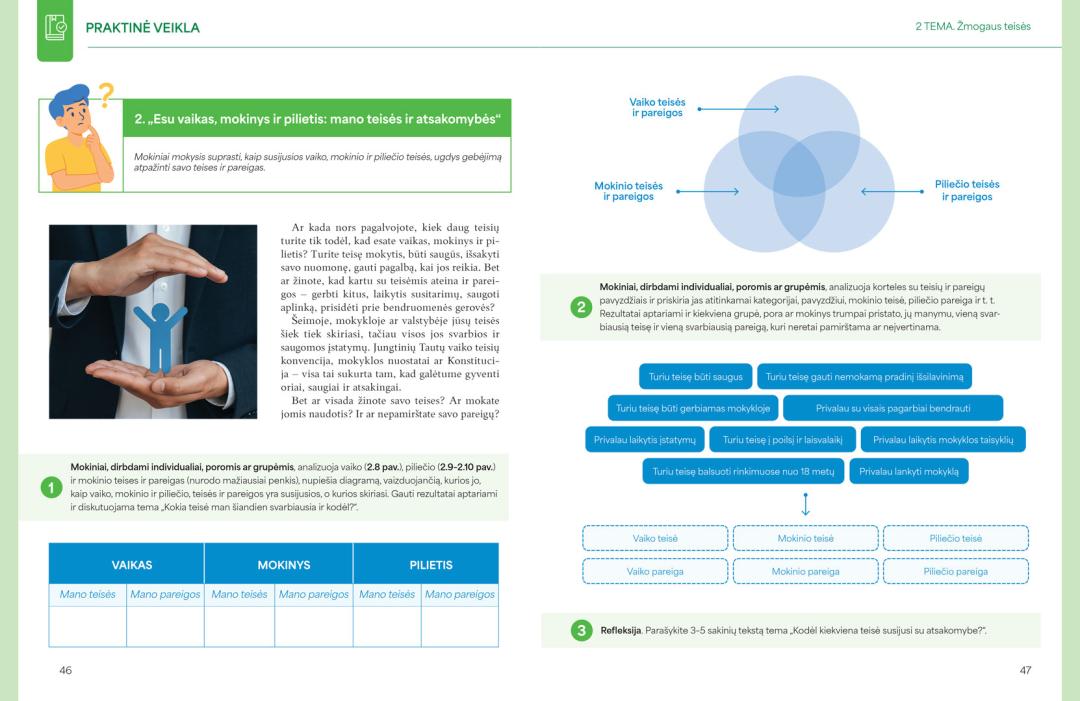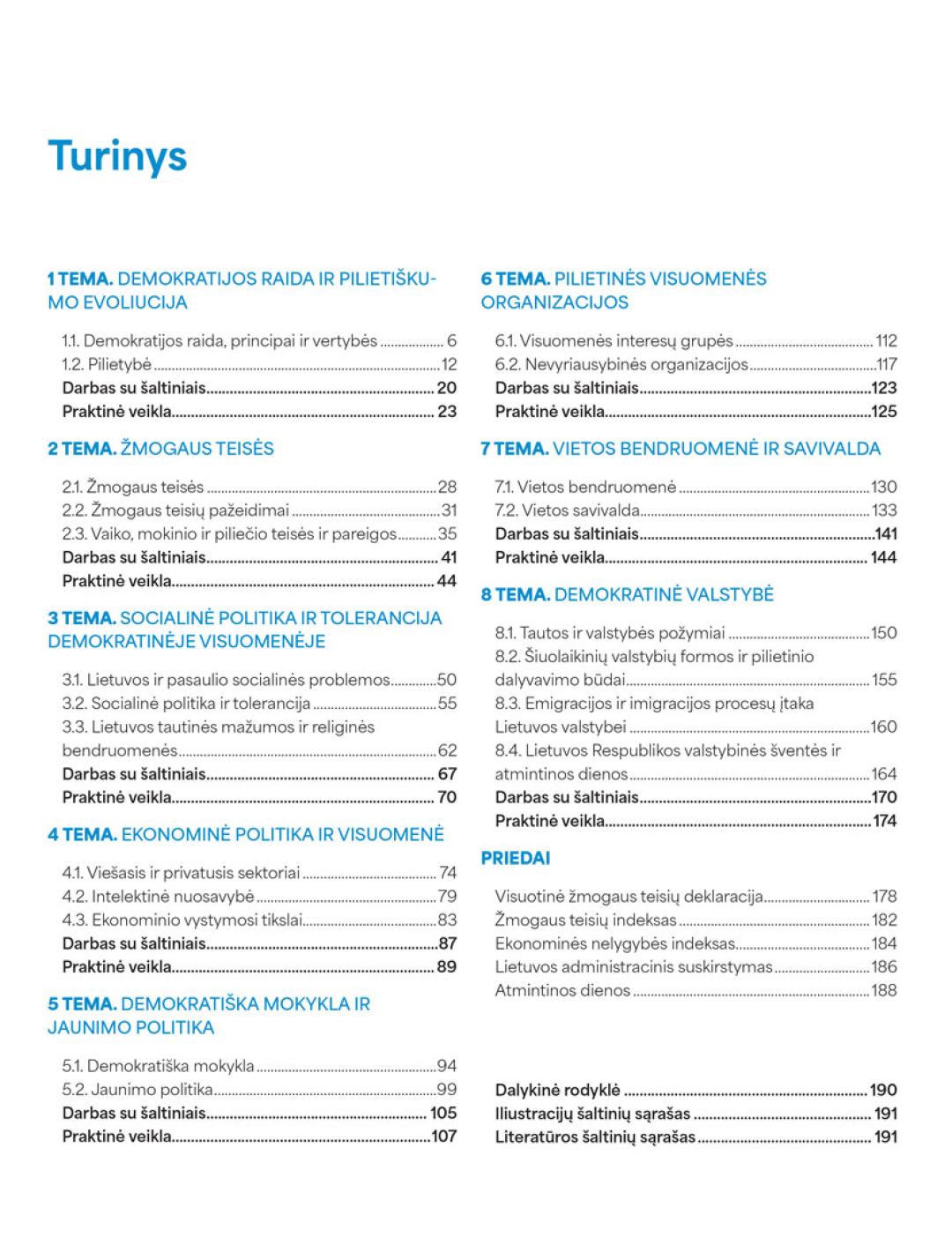 Šio vadovėlio turinys padeda mokiniams geriau suprasti savo vaidmenį visuomenėje, ugdo gebėjimą veikti atsakingai, kritiškai mąstyti ir vadovautis demokratinėmis vertybėmis.