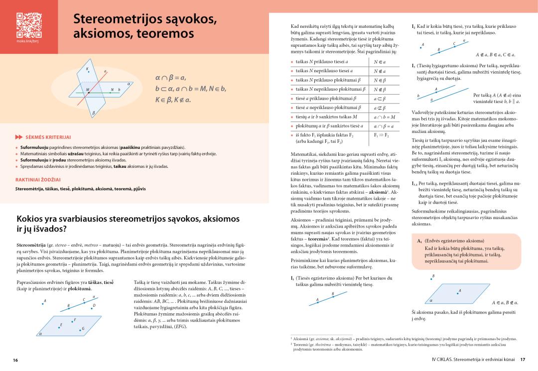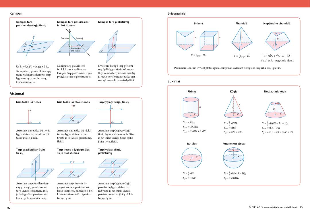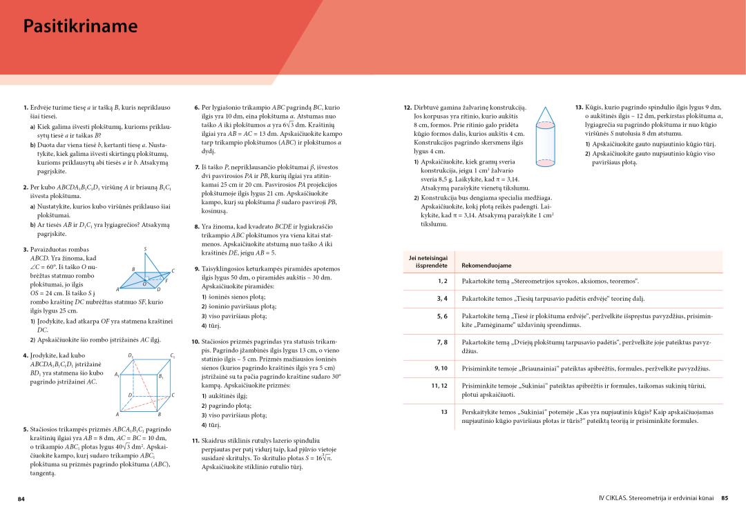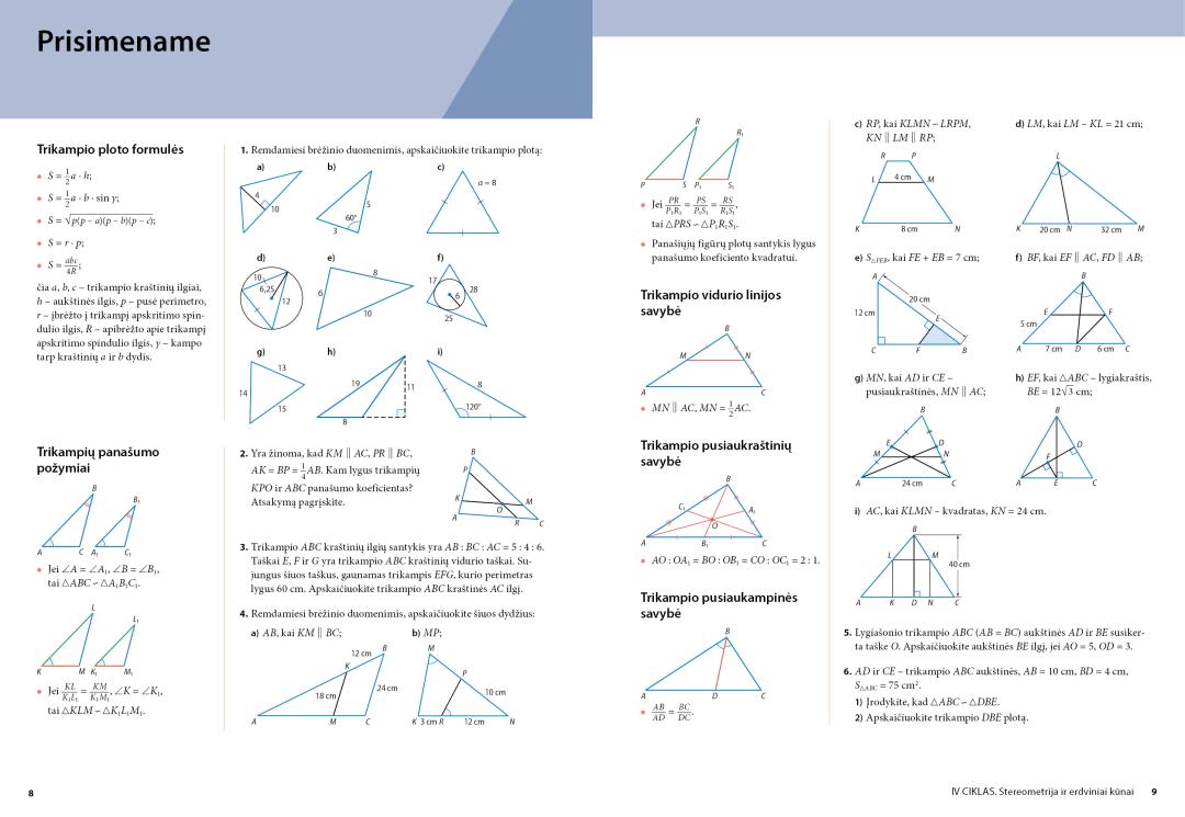 • ciklo temose – nuosekliai išdėstytą naują teorinę medžiagą, sprendimo pavyzdžius, patarimus, uždavinius naujai teorijai taikyti;