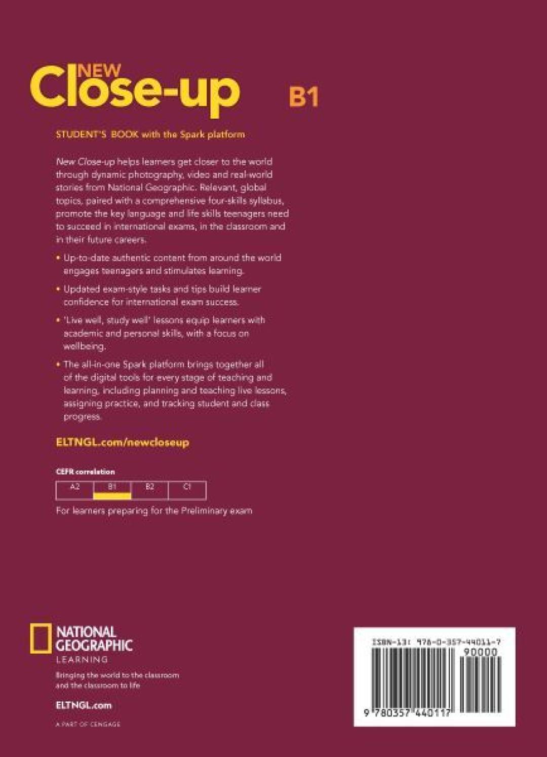 Vadovėlis „New Close-up B1“ orientuotas į B1 kalbos mokėjimo lygį ir gali būti naudojamas 7–8 klasėse (6–7 mokymo metai).